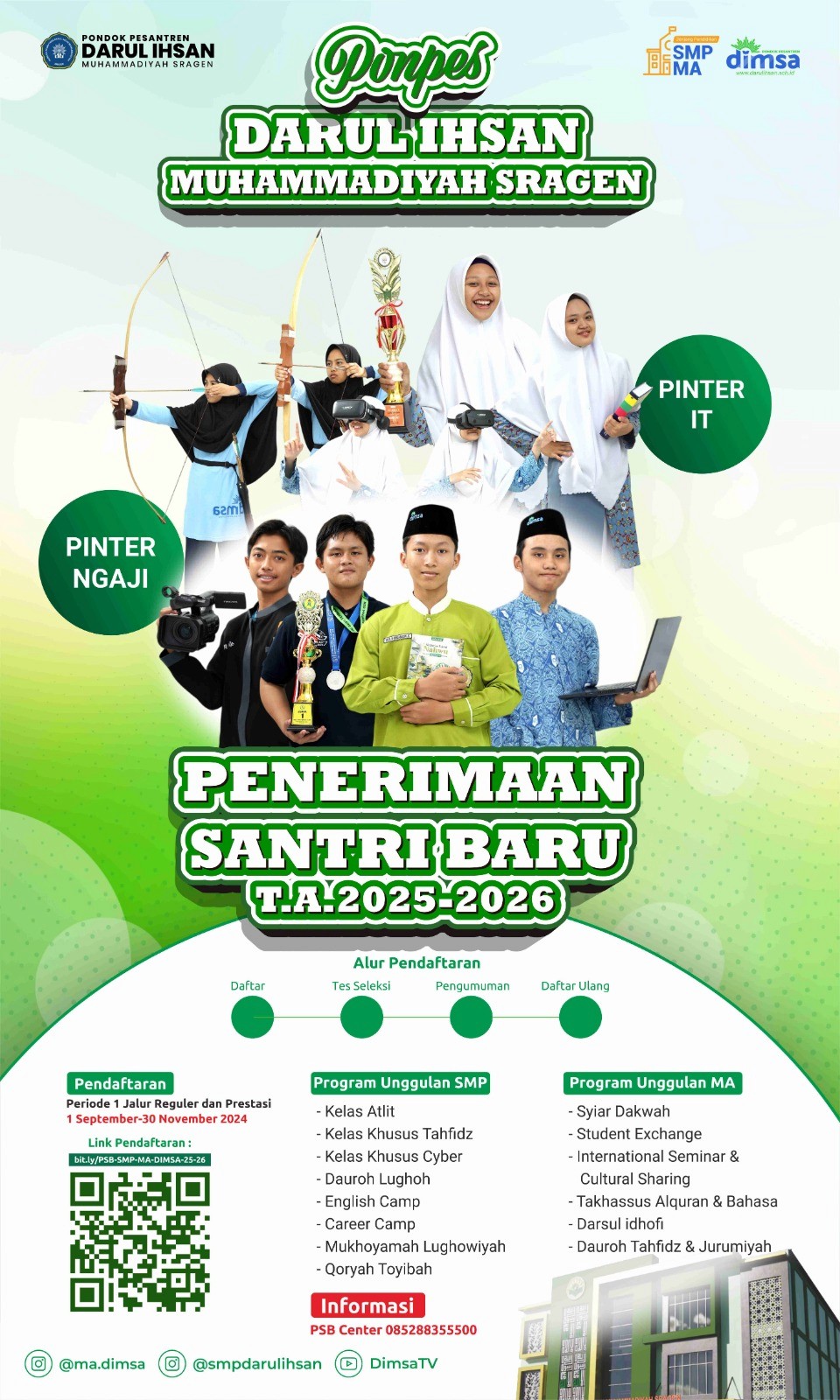 Tahun Ajaran 2024/2025. Anda bisa mendaftar melalui online atau langsung datang ke tempat pendaftaran!
